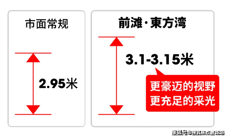 再次,项目的标准层都做到了约3.1-3.15米的层高,远超“好房子”要求的基准线,比普通住宅的层高更是多了约20厘米左右。