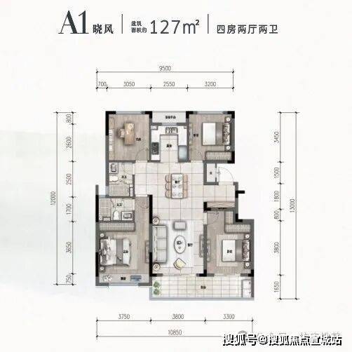 【A1晓风户型】127m,4室2厅2卫,南、北朝向,户型价格【310万/套】这样