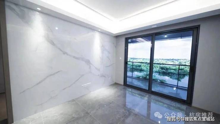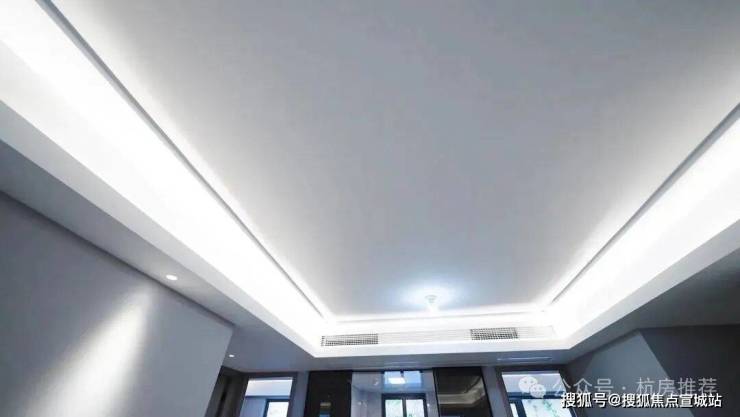 墙面区别于常规项目的乳胶漆,以墙布升级了精装交付标准。吊顶运用了石膏板造型,并且在客厅的电视背景墙位置采用了岩板材质,未来软装搭配轻奢、港式、现代、新中式风格,颜值都十分在线。