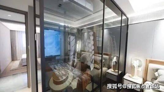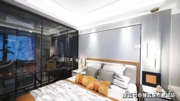 客厅另一侧则是南向主卧,整体套房设计,除了大飘窗带来的视野采光外,主卧还预留了L型走入式衣帽间的位置,不仅增加了收纳空间与私密性,更照顾到主人的精致品位。