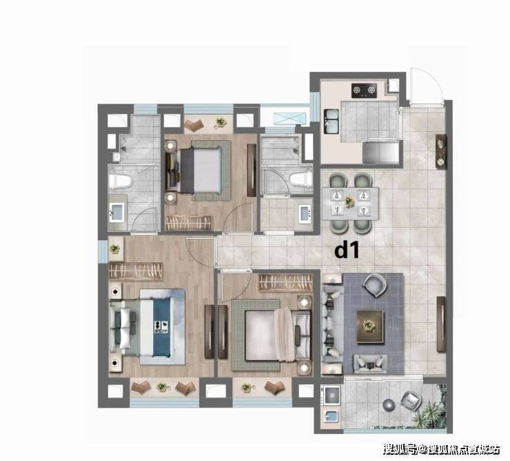 D1户型:建筑面积约113㎡3房2厅2卫