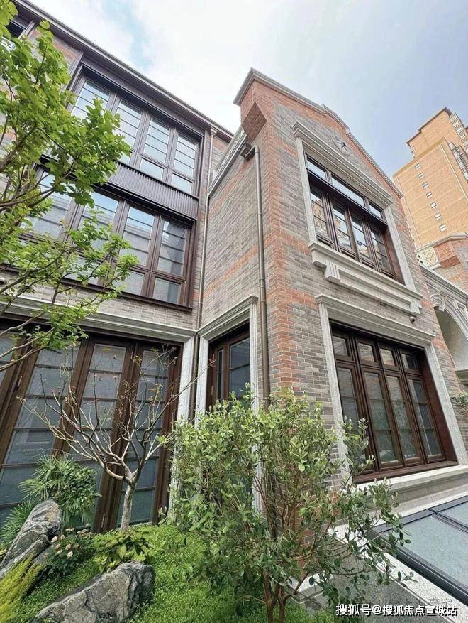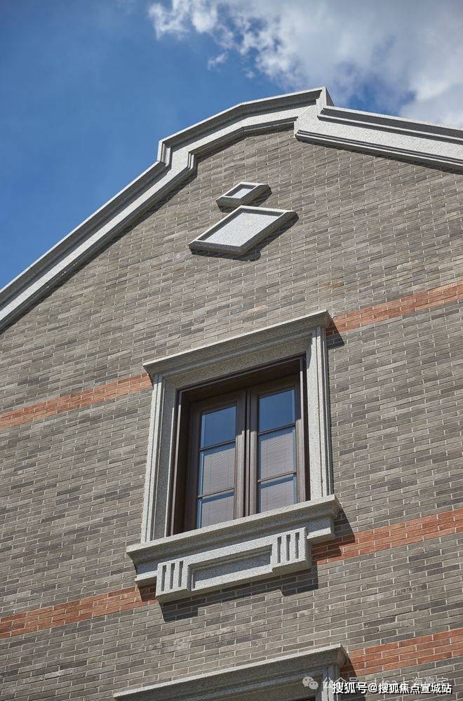 而在与砖连接的窗体,保利永兴里别墅的窗框及四周采用了仿木纹铝型材和铝板,门窗套为浅色石材。