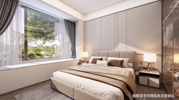 第三,主卧空间带双排步入式衣帽间,卫浴间更是标配双台盆、淋浴房、浴缸,妥妥豪宅级配置。