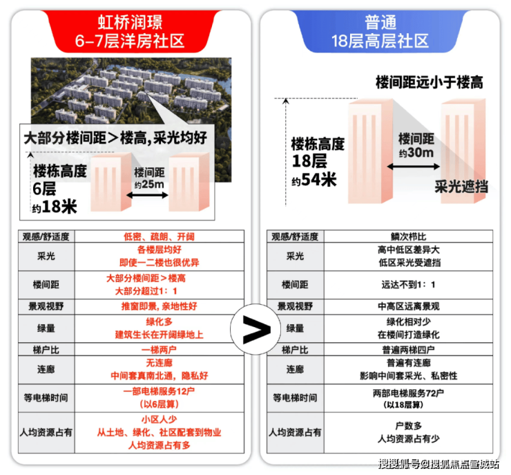 比如楼间距,虹桥润璟楼间距:楼高都超过约1.2:1。