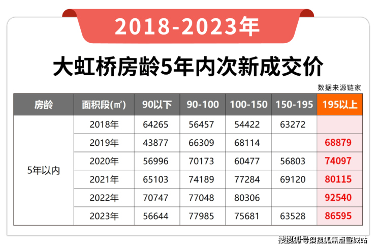 另一方面,小编也统计了链家上大虹桥房龄5年内次新的成交数据。