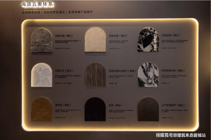 项目不惜高额成本,臻选各种奢石、奢玉、奢镜、奢板、奢品..用高定奢品来点缀社区、室内细节。
