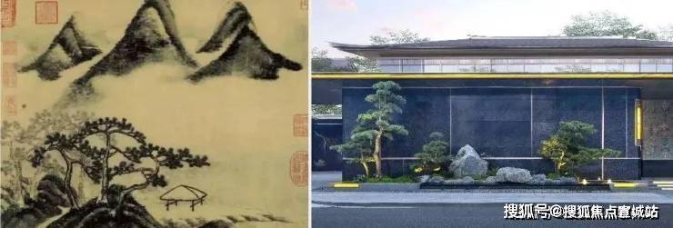 以《春山瑞松图》为灵感,主入口重在营造隐逸雅奢的宋风门府。