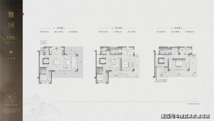 中间套300㎡地上三层双主卧套房设计,每间卧室连通露台或庭院;L型景观面实现“移步异景”。