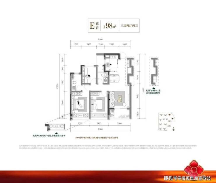 建面约98方明星三房: