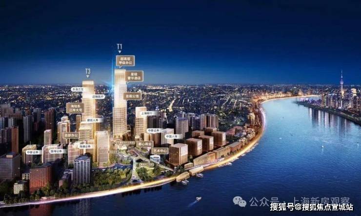 T1-300米超高层塔楼上部46-62层为五星级酒店(丽思卡尔顿)38,40-45层行政公馆,中部7-37层为甲级办公,底部为商业及大堂;