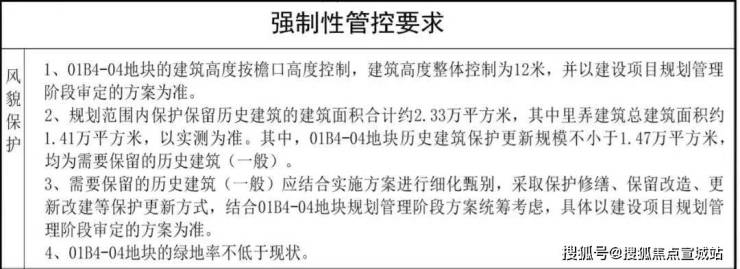 其中,01B4-04地块历史建筑保护更新规模不小于1.47万平方米,均为需要保留的历史建筑(一般)。