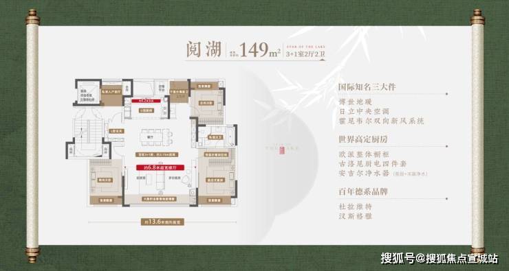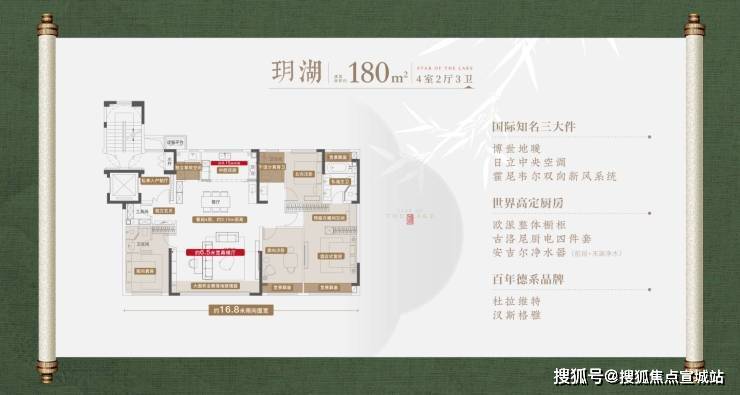 180㎡洋房:四室两厅三卫,南向面宽16.8米