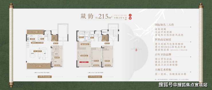 215㎡下叠:四室两厅四卫,赠送约120㎡南北双花园