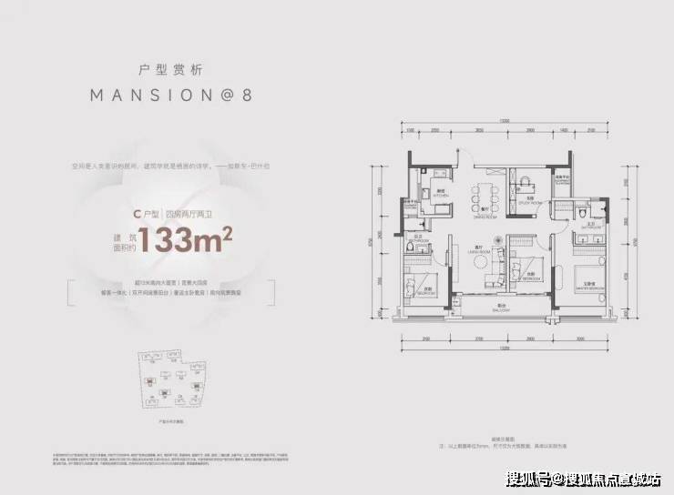 楼盘总户数:471户,11幢14F小高层,户型面积:约106-169㎡,精装4000,“