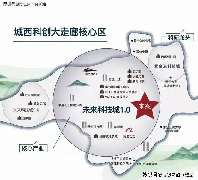 未来科技城是城西科创大走廊的核心区域,是中国四大未来科技城之一,中国硅谷。截止2020年底拥有上市公司300余家,落户企业超2.5万家,包括阿里巴巴全球总部、字节跳动、VIVO全球Al总部、OPPO全球终端总部等高能级名企林立。众多产业云集带动巨大的人口红利,其中以"阿里系、浙大系、浙商系、海归系",四大新四军为主的全球精英汇聚在此。