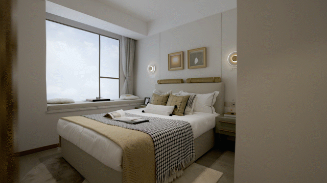 应手。主卧套房设计,优享舒适生活,卧室大飘窗设计,