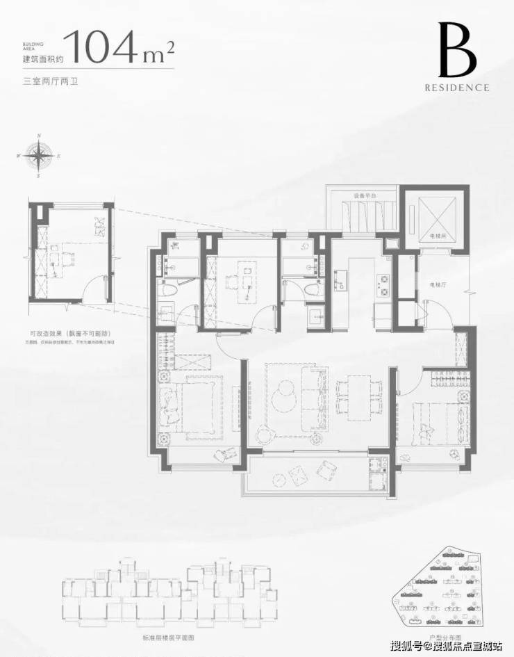 【招商中旅·揽阅】共计规划17栋12-14F小高层,首开楼栋位于整个项目的北侧,共3种户型,分别为建面约96㎡三房两卫、建面约104㎡三房两卫、建面约135㎡四房两卫。3种户型提供了全生命周期成长空间的方案。