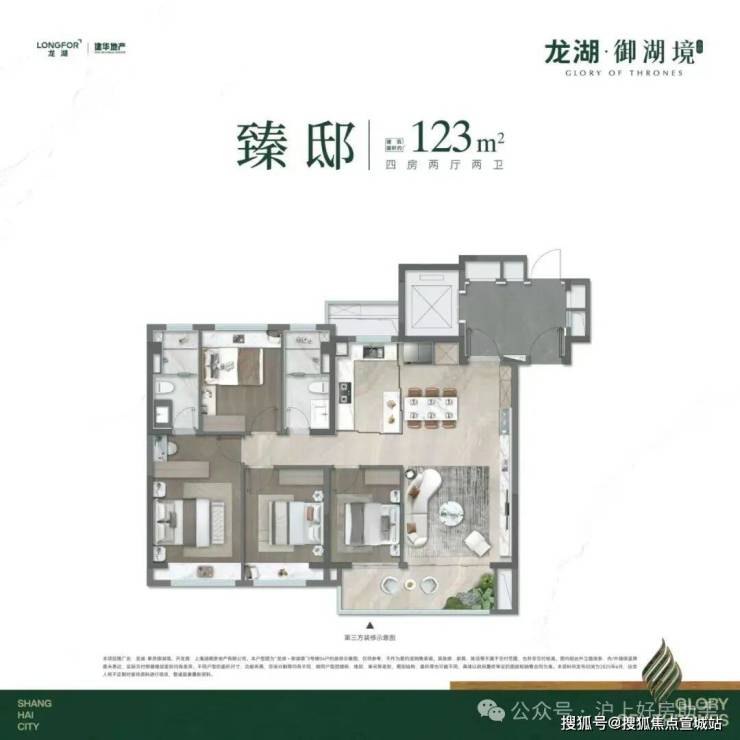 龙湖·御湖境建面123㎡4房样板间实拍视频: