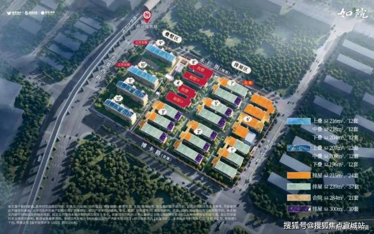 越秀·如玺华院项目规划了91套建面约217-298方排屋、72套建面约198-210方叠墅、21套建面约284方合院,排屋占绝对主力。