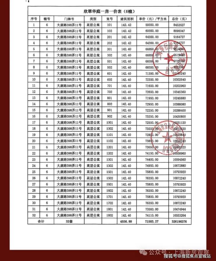 一房一价表如下: