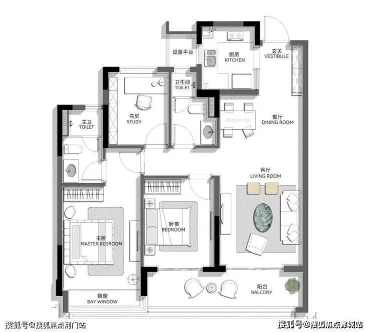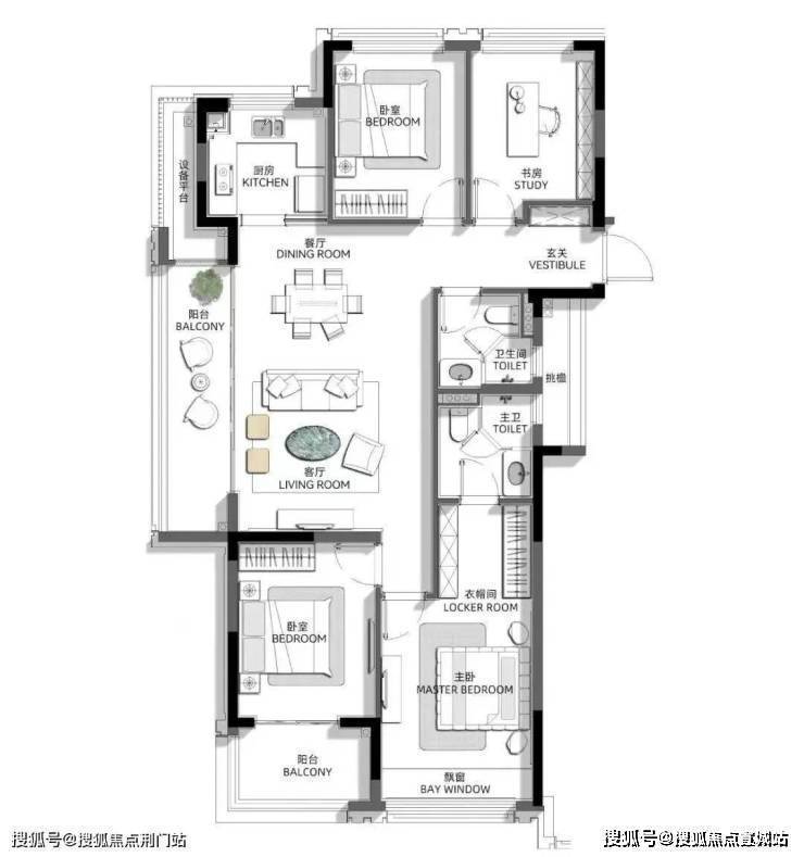 3+1全能空间,一步到位,可满足三代人生活所需,重点是主卧还带走入式衣帽间。
