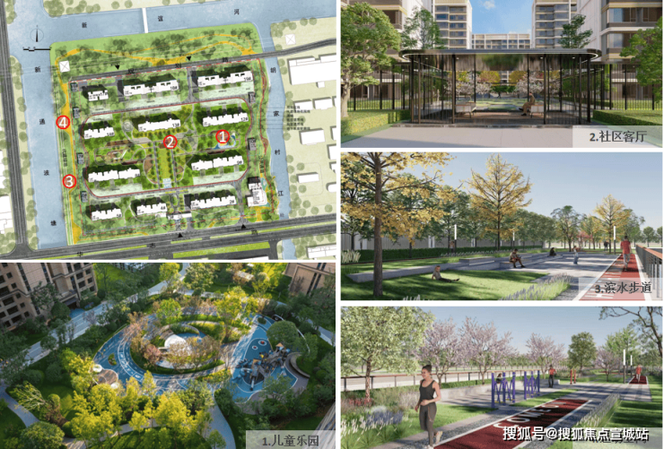 沉浸景观:中央景观轴串联组团花园、儿童乐园与滨水绿地,设置林下会客厅、沿河步道、全龄活动区,强调景观的可参与性。