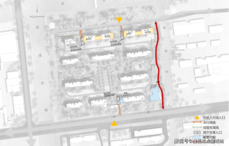 功能剥离:将配套用房集中设置于地块东南角,采用一层架空设计,减少汽车坡道对居住环境的干扰,提升社区静谧品质。