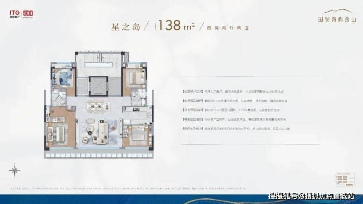 另外一方面,以滨海度假酒店的美学笔触,绘制“一心双轴双庭四境”海上森屿墅区。