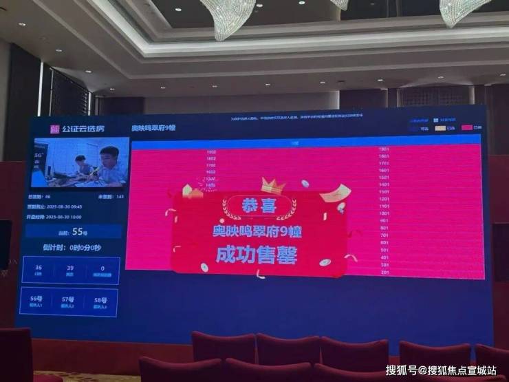 ① 滨江绿城·奥映鸣翠:二次加推36套房源,总共229组家庭登记,综合中签率15.72%,最终叫号至55号选房结束。