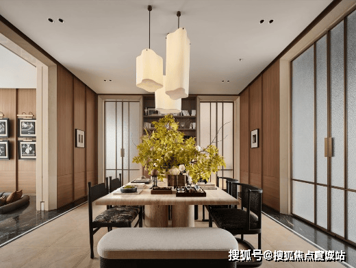 杭扇元素构建雅奢立面:沄璟文华轩的立面系统以理性建构逻辑实现艺术雅奢表达。设计溯源杭扇的“斜切角”与“折叠线”两大元素,将西方古典建筑的秩序法则与东方折扇的流动意象进行参数化转译。