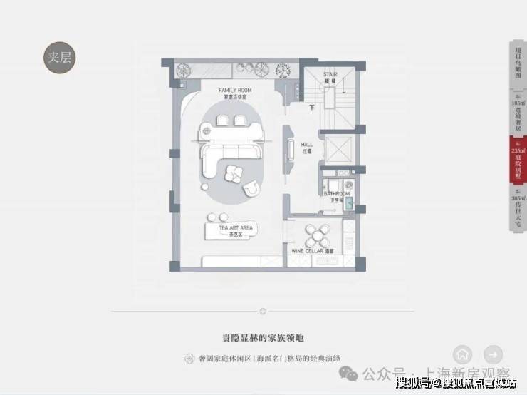 建面约235平方米,赠送地下室:约130-140平方米;赠送花园、露台、阁楼,总价约4750-5120万