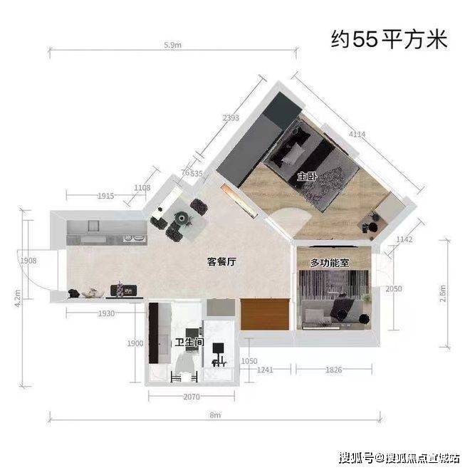 本项目总高21层,层高3米,总价约180-295万,目前在售户型有36㎡、55㎡、59㎡,现房装修全配交付,首付需8成左右。