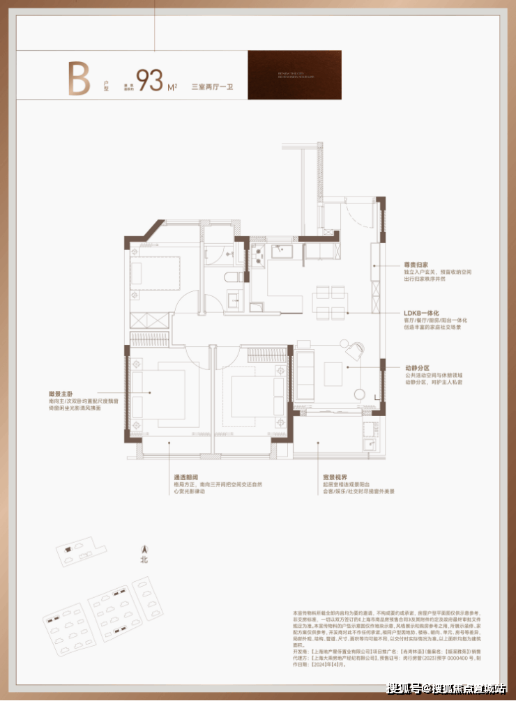 以主力户型建面约93㎡3房为例,从面积段上来讲,应该是紧凑型的3房。
