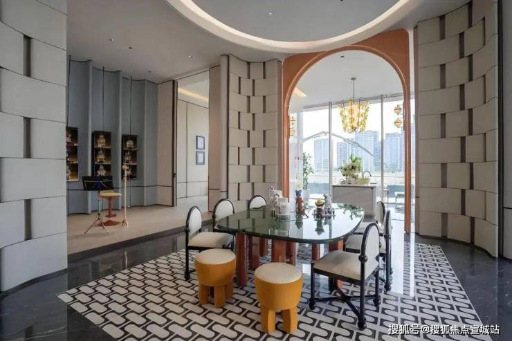 首层全架空,部分楼栋5.5米层高,设计成全龄泛会所,功能性也非常丰富,打造了2个童玩主题,还有专门的老年主题,女性主题等功能空间,在6幢的架空层里更有专门的labubu主题轰趴馆空间,搭配抬升设计特有的城市阳台空间,再加上风雨连廊,下雨天在小区里散步也很方便。