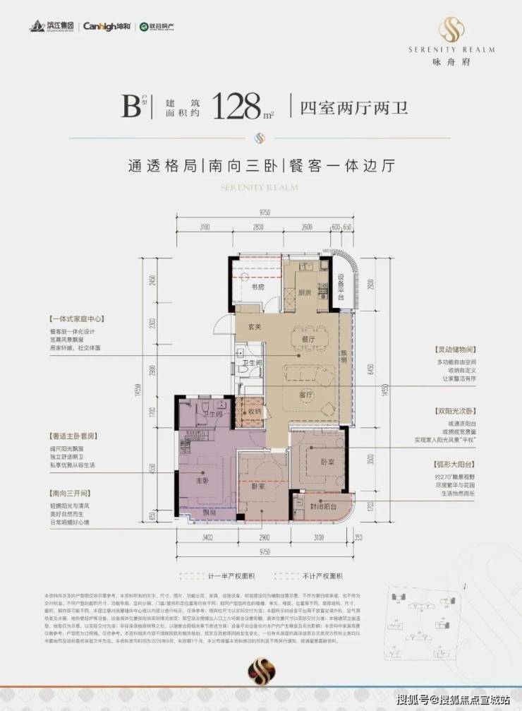 建面约128㎡户型入户独立玄关空间,LDK一体设计,还做到了南向三卧设计,实用性更高;三房朝南,主卧套房、次卧带270度瞰景飘窗,约9.75米的南向超大采光面,将这个户型的阳光指数拉到了“峰值”;自带多功能储物间,让家更整洁有序。