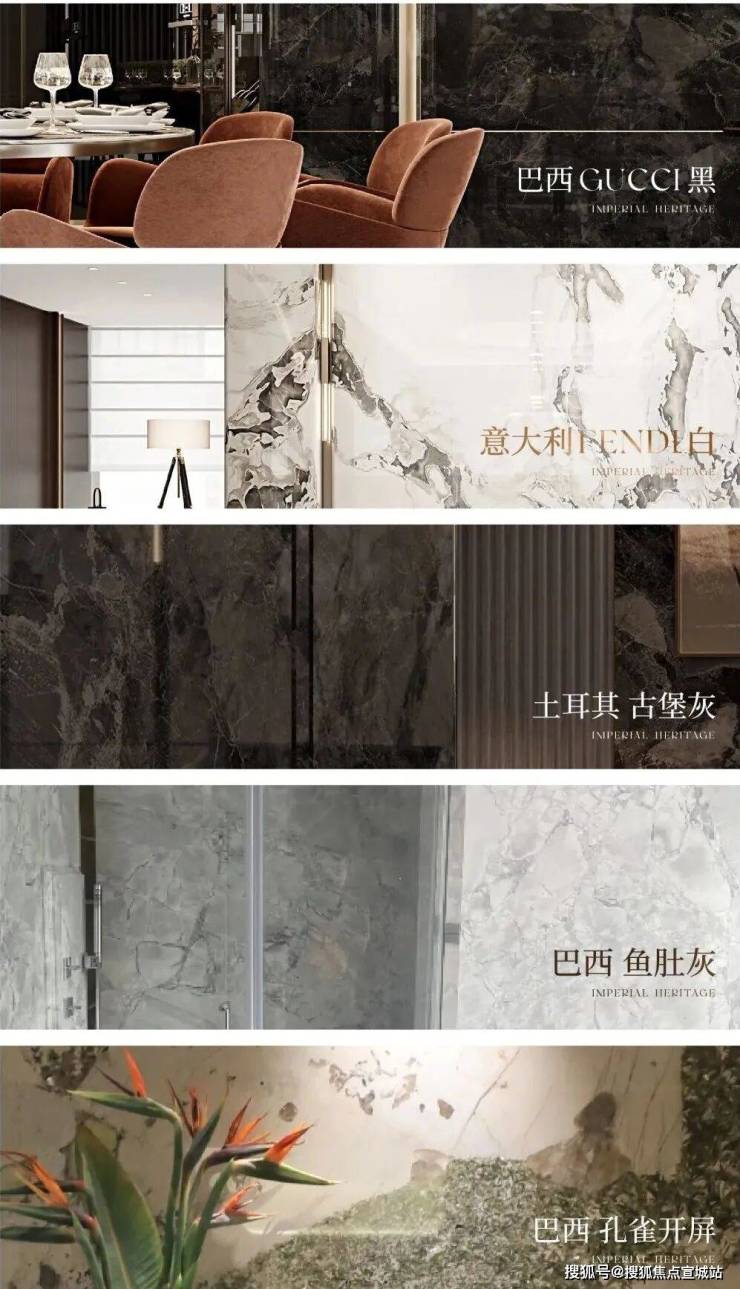 古奇黑、芬迪白、古堡灰、鱼肚灰、孔雀开屏等奢石的运用,每一块都是全球甄选的珍稀石材原料,自带豪奢高级气质,为空间增添无尽的美感与价值。