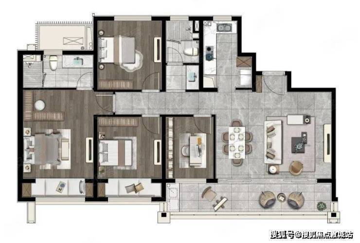 项目特色:建筑外立面采用公建化处理,材质选用深灰色铝合金线条、金属格栅和大面积的玻璃幕墙,将苏州园林传统元素融入其中。小区内有 1.6 万平米的市政公园,还有 4 大沉浸式的景观园林,5 大主题的宅间花园,兼具社区氧吧、社区客厅、阳光草坪等功能。