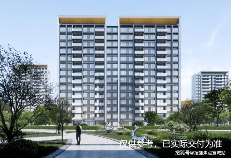 项目采用香槟金搭配银色铝板外立面,天幕美学灯塔;社区恢弘迎宾楼,仪仗归家。