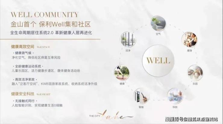 项目特色:紧邻金水湖湿地公园,坐拥约 40 万方湖景公园与 15 万方滨湖绿地,是金山首个保利 Well 集合社区,引入国际领先的健康建筑标准,打造健康微气候系统。社区采用 “洄游式” 动线设计,配备无接触式安防系统。