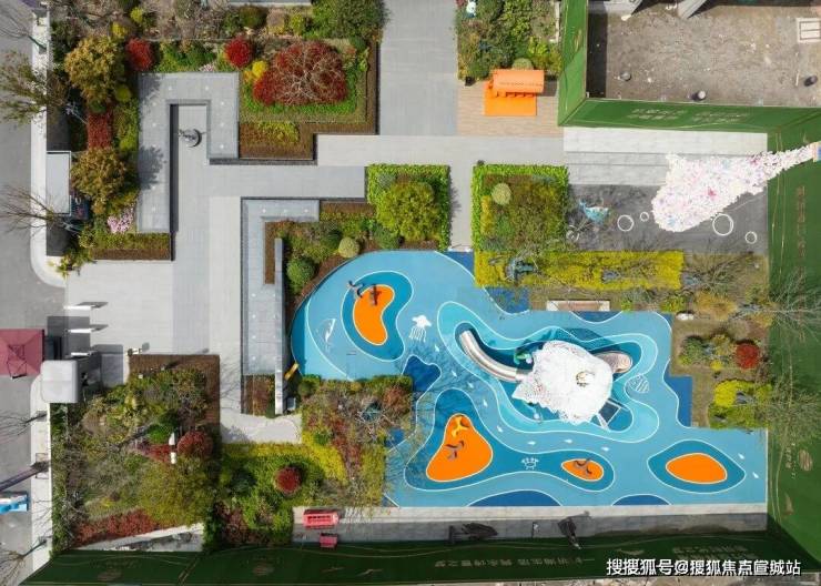 园林景观:以海浪、礁石、沙滩、绿洲、彩林为主题打造五大园林场景,有核心会客厅、童趣乐园、约 350m 环跑道等。