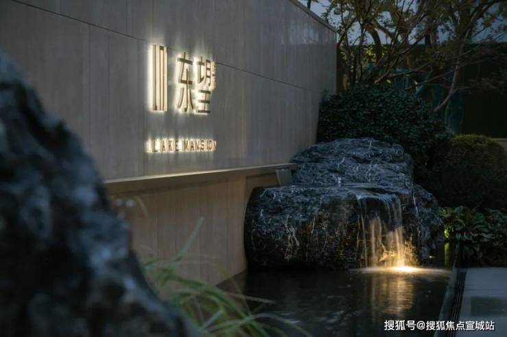 △自然的质朴与精致景墙冲击碰撞,保留黑山石的肌理,少部分进行人工平整,减少人工雕饰感,潺潺的流水更具自然、和谐的气息