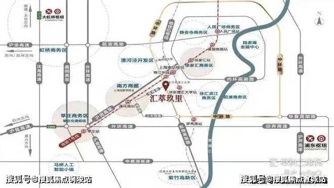汇萃玖里,坐落闵行与徐汇主城区-交界黄金中环地带!中环上中西路下匝口,虹梅南路与益梅路交汇处、东至虹梅南路(中环高架)南至北潮港、北至益梅路!