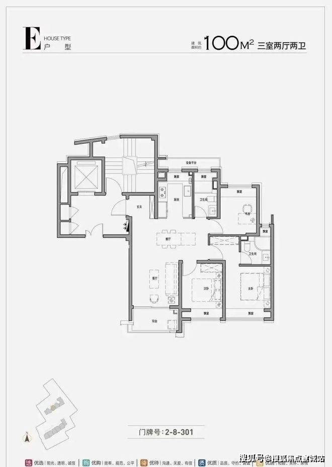 户型面积:主力户型为建面约100-137㎡的3/4居室,其中100㎡为3室2厅2卫,137㎡为4室2厅2卫。