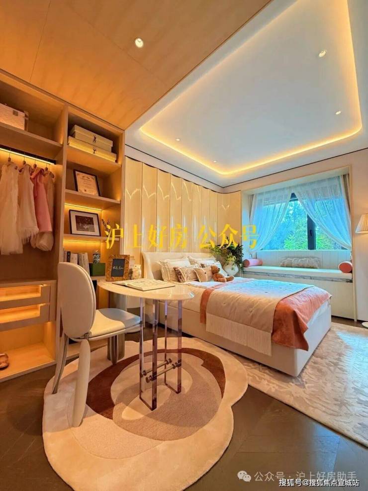 这可能是我见过弧形元素最多的样板间,吊顶、客厅墙面及卧室背景墙均采用大量曲面处理,涵盖木饰面与奢石等多种材质弧形工艺,即便工序复杂且成本高昂,但绿城仍坚持落实,只为业主更高级的使用体验