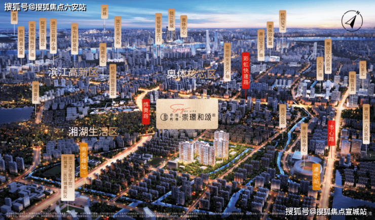 项目3KM生活圈内,开元广场、恒隆广场、万象汇、旺角城新天地等醇熟商圈环绕;朝晖初中、湘湖附小、高桥初中、萧山第一实验小学等全龄段学府环伺左右(具体教育资源以主管部门意见为准)。周边更有萧山体育中心等,及堪比西湖的湘湖景区,全面完善的配套资源,让生活更享缤纷、繁华。