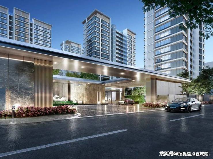 【建筑风格】现代简约风,外立面采用大面积玻璃加铝板,打造非对称L型立面,材质造价更高,抗腐蚀性程度更高。