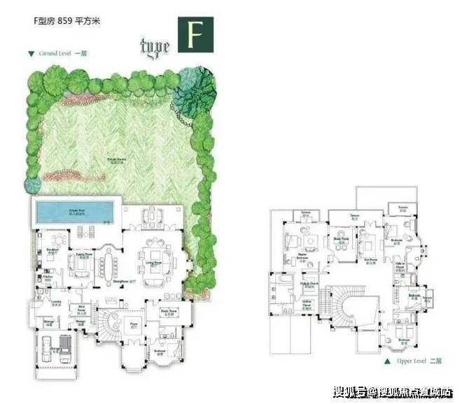 户型设计:含双车库、挑高宴会厅、南北双花园部分户型配备下沉式酒窖、私人影院