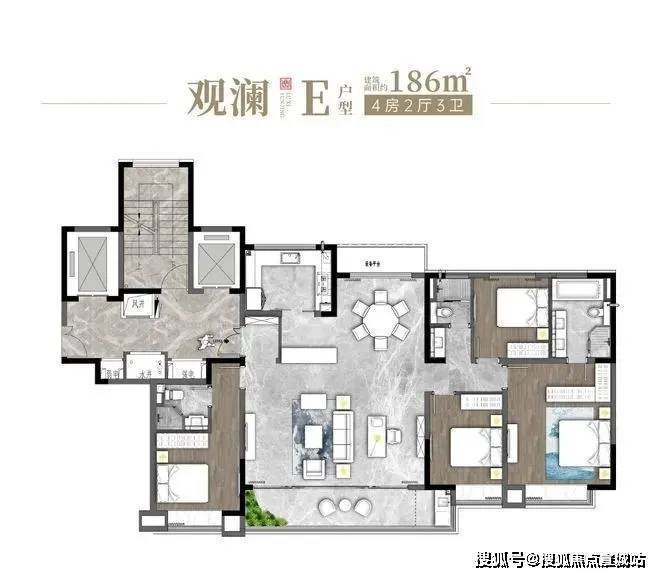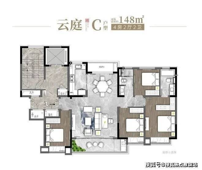 部分户型具有标准层高设计,户型方正,空间使用性高,有独立玄关提升隐私性。4室的设计适合改善型人群,2卫的配置可避免抢卫生间的尴尬,保证主人生活的私密性。餐厅和客厅无缝连接,营造出局部大空间的体验。房间动区简约大气,提供舒适的生活娱乐氛围。部分主卧采用套房设计,扩大了卧室面积,配有独立的主卧卫生间,提升了主人的居住体验。部分户型的主阳台朝南,若装配落地窗,采光较好,且户型朝南的房间较多,可充分享受“冬暖夏凉”的舒适体验,同时南北通透,厨卫全明,室内采光无死角。