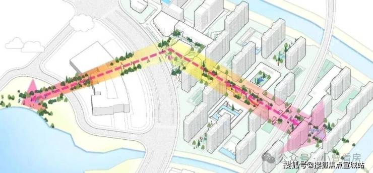 据悉社区由自持住宅、可售住宅、社区配套三大功能组合而成,北区为公区自持配套区,中区为住宅社区,南区为住宅社区及配套。