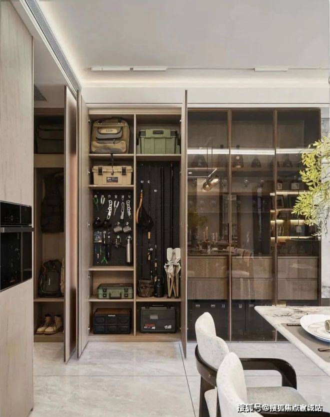 全屋收纳系统,满足一家老小海纳空间!约2.25mx2.4m的超体量玄关柜,为生活扩容,可容纳约56个20寸行李箱,而玄关柜、岛台、卫生间镜柜、主卧衣帽间等空间,把更多隐藏空间打造成超级收纳功能,让未来的生活井井有条。